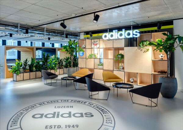 A seguito di un concorso di progettazione invitato, JOP sono stati assegnati per progettare il nuovo Adidas Trading Office Svizzera. Il concetto che è stato ulteriormente sviluppato in stretta collaborazione con il dipartimento di design Adidas con sede nella sede tedesca di Herzogenaurach e il team locale sta combinando sia i valori fondamentali di Adidas come marchio di design e sport e gli elementi locali svizzeri.