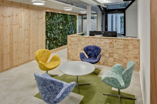 Zurigo vicino a Central. JOP ha progettato il nuovo spazio tra cui una reception, una sala riunioni, box privati per telefonare, uno spazio breakout, spazi collaborativi e aree openspace. Il concetto generale è quello di creare “un paesaggio lussureggiante” prendendo lo sfondo di sostenibilità del business unit in considerazione. Il concetto è ispirato da un dipinto di Henry Rousseau che riflette la sua immaginazione di un “ambiente selvaggio” tradotto nello spazio urbano e di una selezione dei materiali.