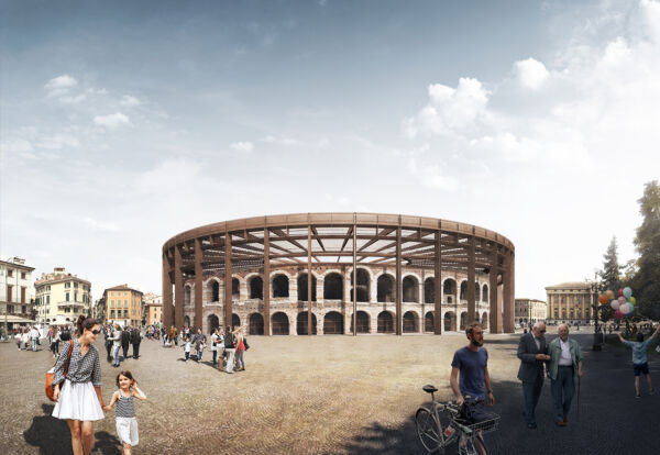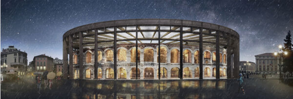 Realizzare la copertura di un edificio significa progettare un edificio. Progettare la copertura di un monumento significa trasformarlo. Progettare la copertura dell’Arena di Verona significa riprogettare l’Arena di Verona nella sua immagine complessiva in quanto la figura che essa avrà si rifletterà sull’immagine di Piazza Bra nel suo insieme. Il progetto di una copertura retrattile per proteggere, incrementarne l’utilizzo e preservare uno dei più grandi anfiteatri di epoca romana, si basa sull’idea che la copertura dell’Arena debba essere il più aderente possibile a quella che avrebbe potuto avere l’edificio originale nella sua interezza