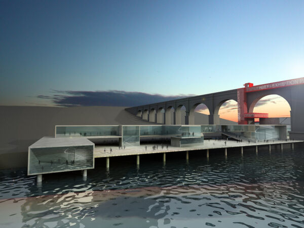 An exhibition space that climbs the bridge and descends to the banks of the Hudson River. Connections, external and internal paths, vertical and horizontal, follow one another with art galleries, exhibition spaces, ateliers for artists and spaces for performers. The relationship between interior and exterior is maximised with very large windows, spaces, and pathways that follow one another.