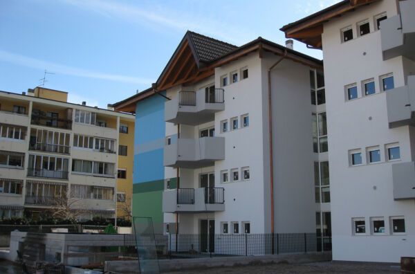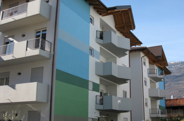 A detailed study of shapes and colours has led to the creation of a residential complex of 6 buildings (3 stairwells) with a different style from the "rigid" cube.