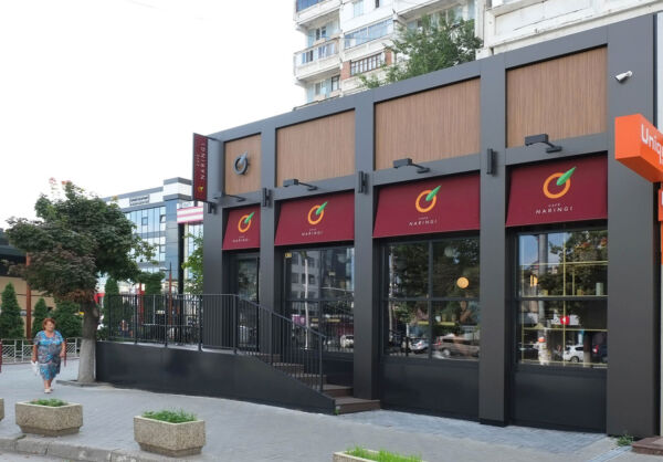 Naringi è una catena di caffetterie in Moldavia. Abbiamo studiato e definito diversi ambienti all’interno del cafè: l’ingresso con ripiani alti e sgabelli per una pausa veloce, la zona bar principale con tavoli, sedie e un grande divano per una pausa più lunga, la zona lounge con poltrone e libreria per un momento di relax.