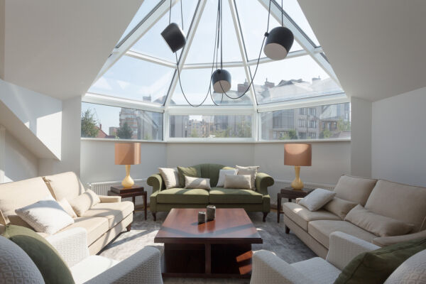 Al piano terra si trovano gli spazi per la convivialità come l’ampio salone doppio, la cucina e lo studio. Al primo piano si trova la zona più riservata della residenza con la camera matrimoniale, il guardaroba, il bagno padronale, una camera degli ospiti con bagno privato.